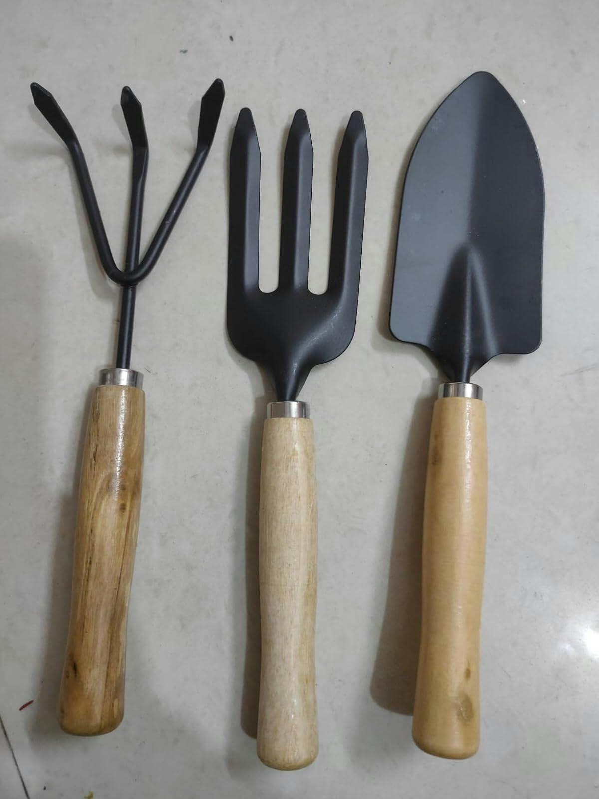 - Set Includes: Hand cultivator, small trowel, garden fork.