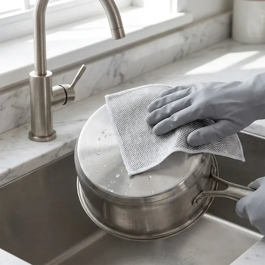 5564 Double-sided Multipurpose Microfiber Cloths Stainless Steel Scrubber Non-scratch Wire Dishcloth Durable Kitchen Scrub Cloth (1 Pc 20x20 Cm)