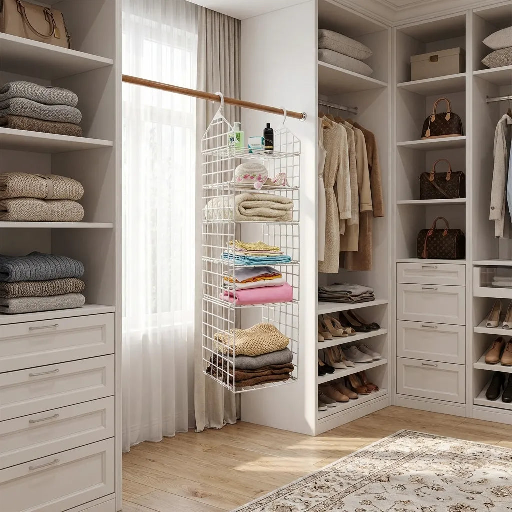 Our 5-Tier Foldable Wardrobe solves small-space storage struggles with smart vertical organization. From dorm rooms to studio apartments, this versatile rack gives you full outfit visibility while occupying minimal floor space.