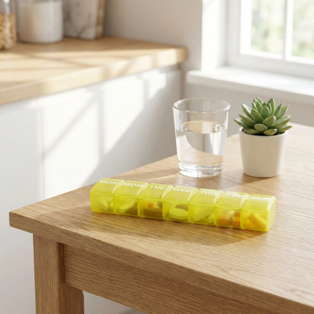 Never miss a dose again! This compact 7-day pill organizer ensures your meds are fresh, organized, and easy to track.
