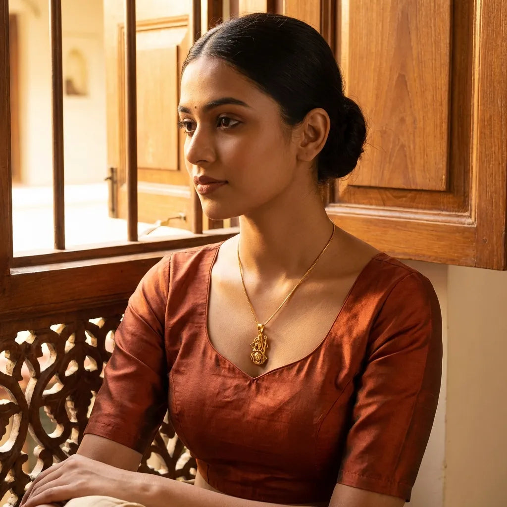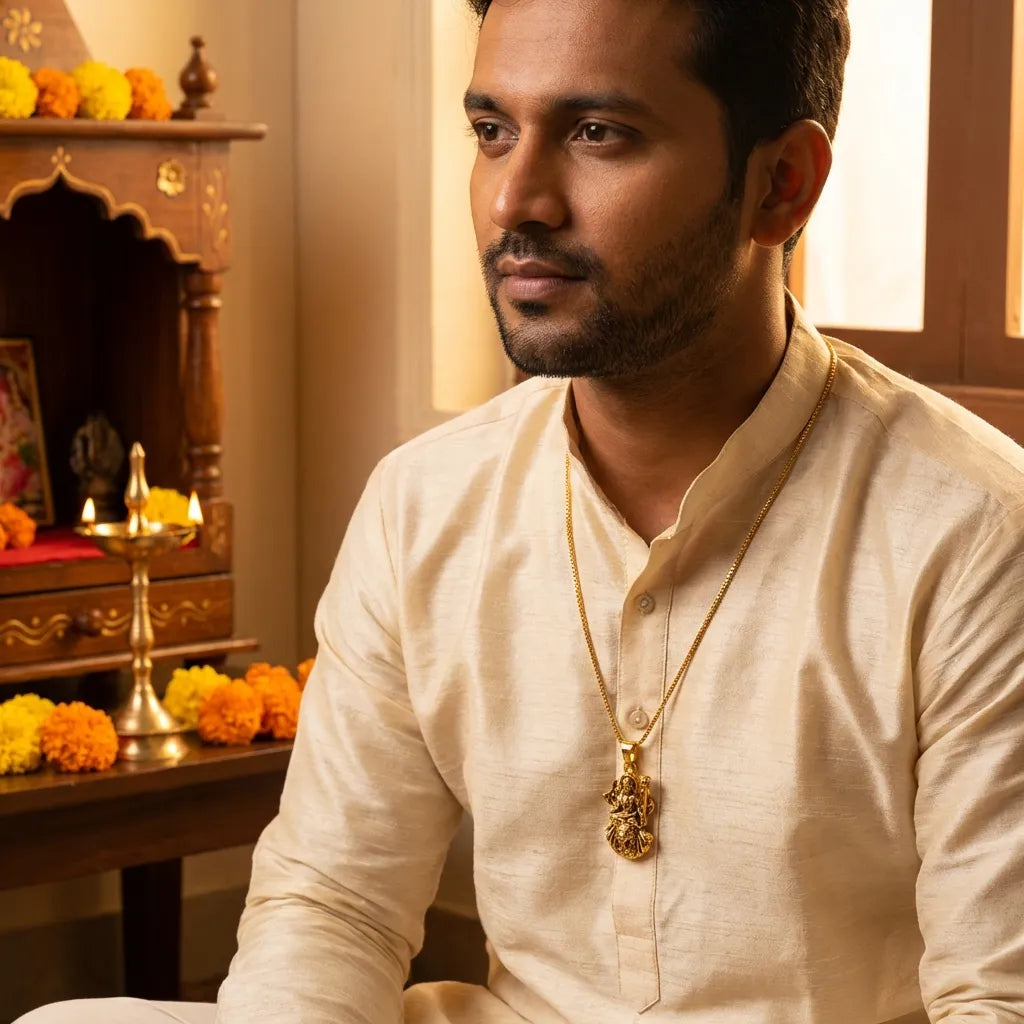 The Gold Plated Ambe Mataji Pendant with Chain is a graceful fusion of devotion and elegance. Made from high-quality alloy steel and polished with a radiant gold plating, this pendant exudes divine beauty and sophistication. It’s designed to suit everyday wear while also being perfect for festive or spiritual occasions. Lightweight yet durable, this chain and pendant set makes a thoughtful gift for loved ones who value tradition and style.