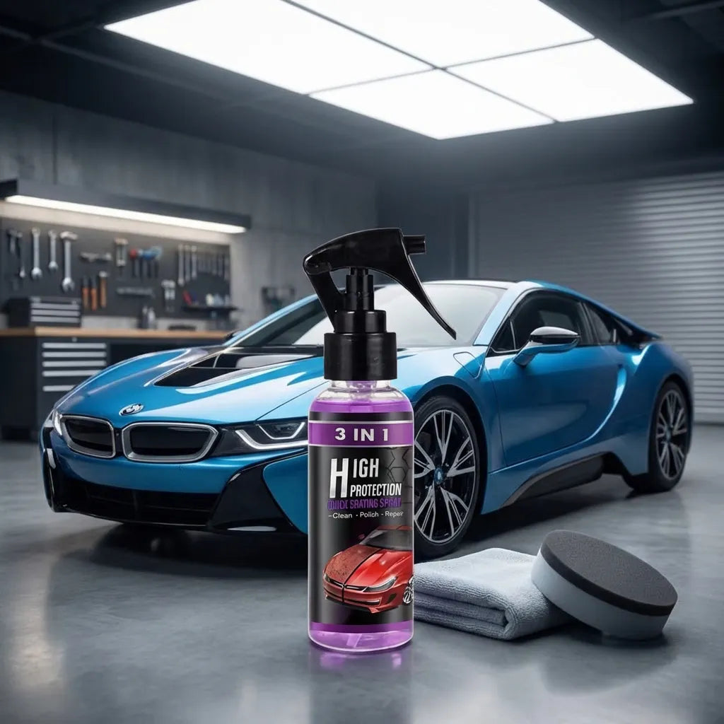 The 3 in 1 ceramic coating spray forms a protective barrier between your car's paint and the elements. It keeps your car's exterior looking shiny and new for longer by repelling dirt, dust, and UV rays.