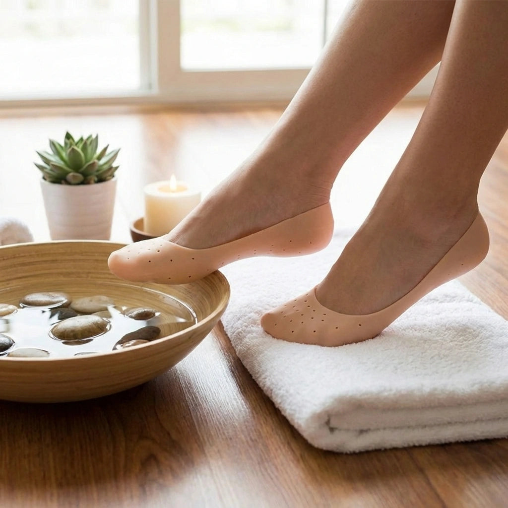 Say goodbye to cracked heels! These silicone heel socks provide pain relief, hydration, and protection for soft, healthy feet overnight.