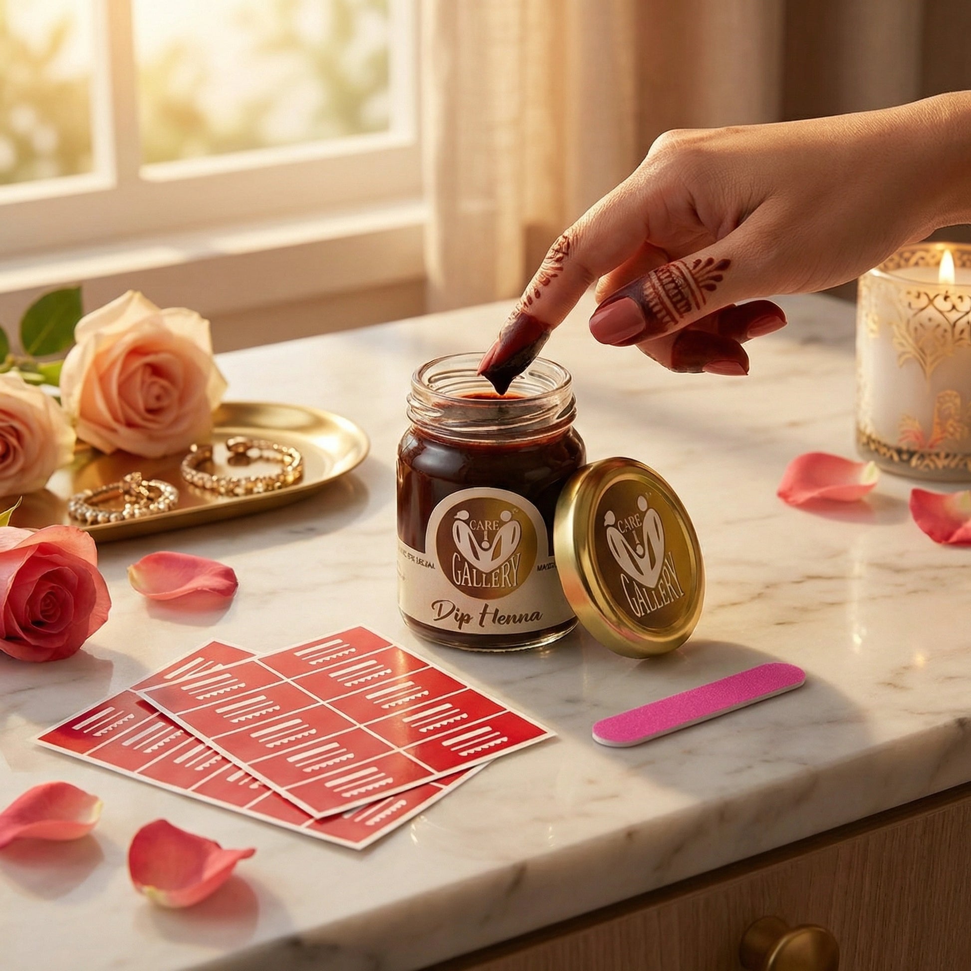 Dip Henna Instant Red Colour Mehendi Paste offers a simple and mess-free way to get beautifully tinted fingertips and temporary tattoos. The pack includes three unique henna tattoo sticker sheets, making it perfect for those who want stylish, intricate designs without the effort of traditional mehendi application. The ready-to-use paste provides a deep, long-lasting red hue ideal for festivals, parties, or daily wear.