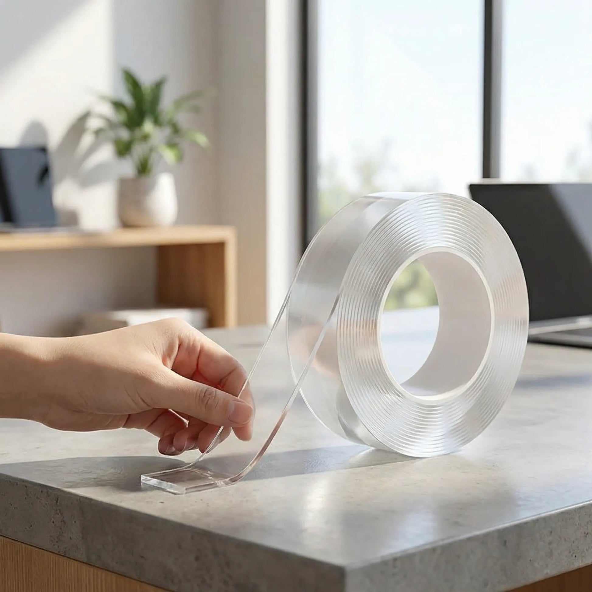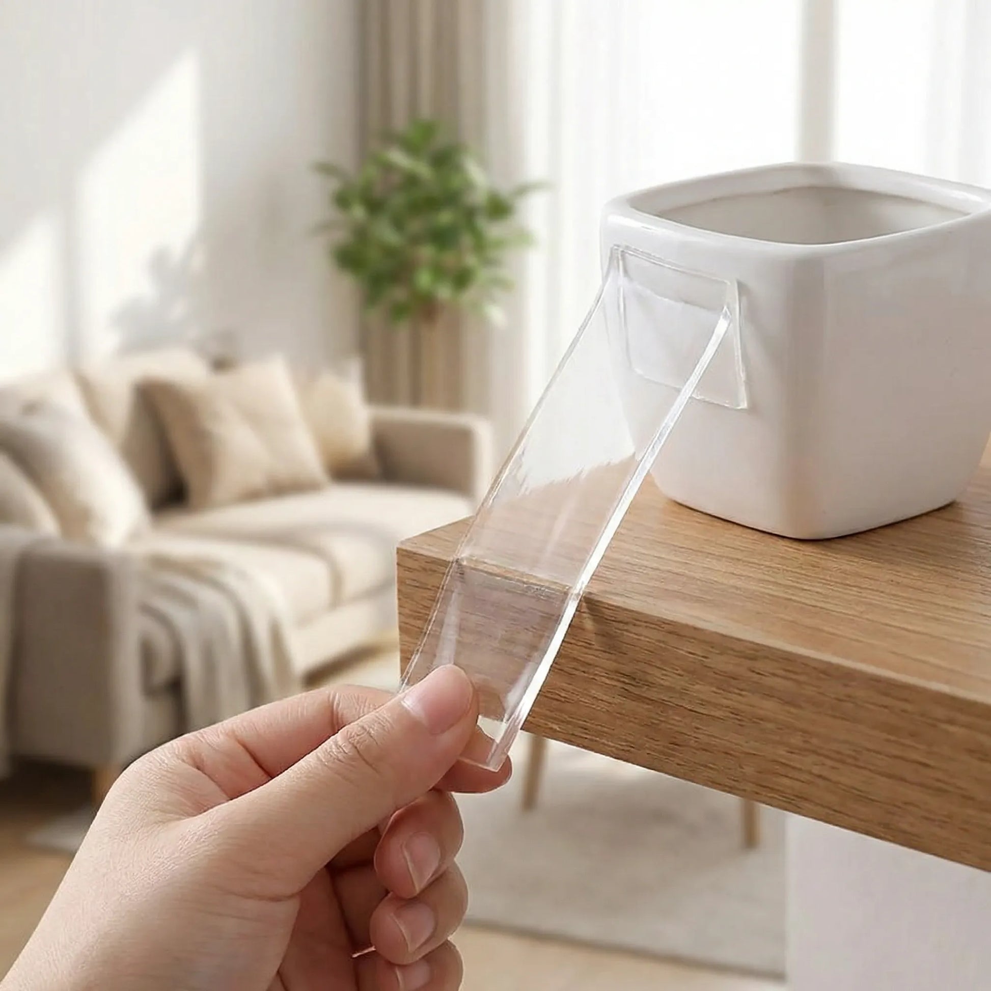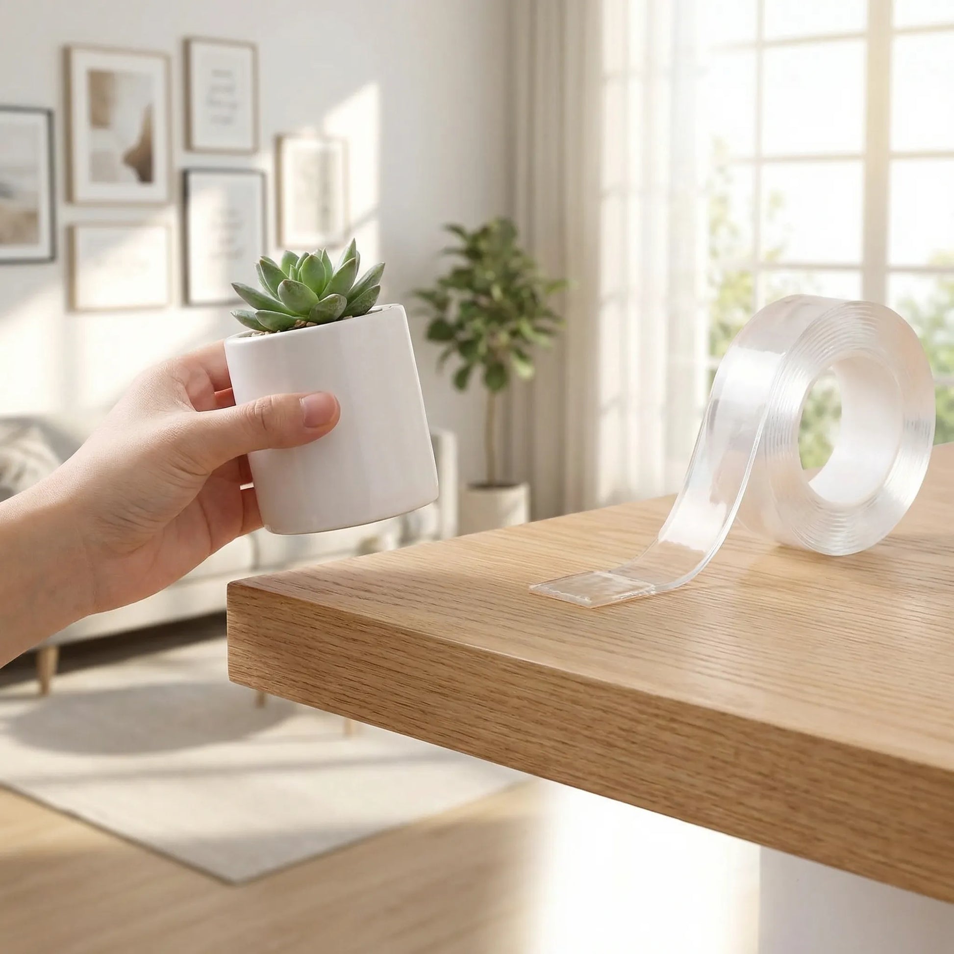 This double-sided tape offers strong, non-marking adhesion. It can be used for hanging pictures, organizing cables, stopping furniture movement, and more.