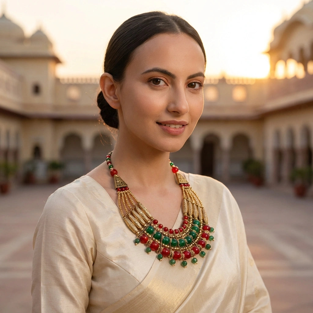 Oxidised Red & Green Beaded Necklace