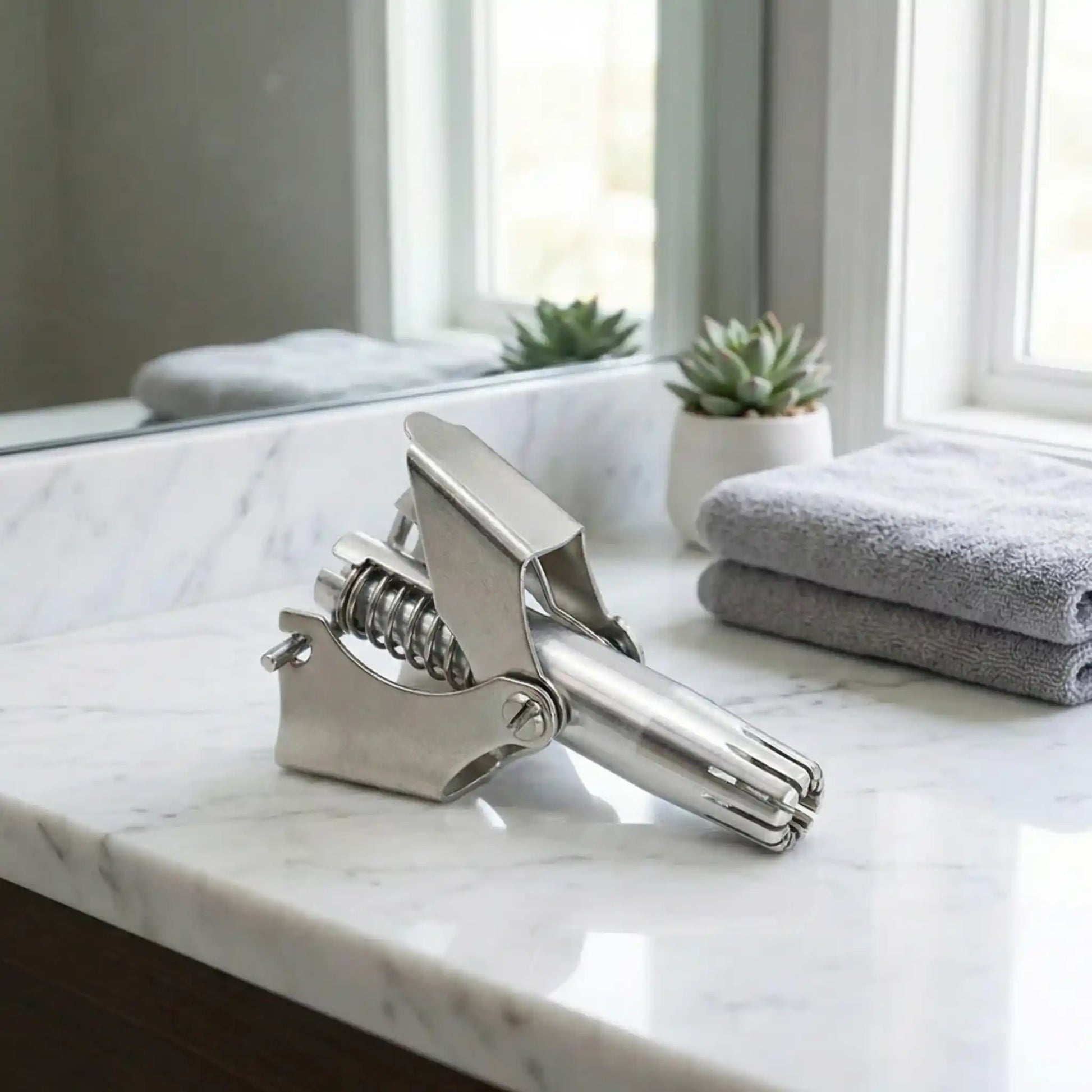 Tired of messy nose hair? This stainless steel trimmer is portable, painless, and battery-free—perfect for on-the-go grooming!