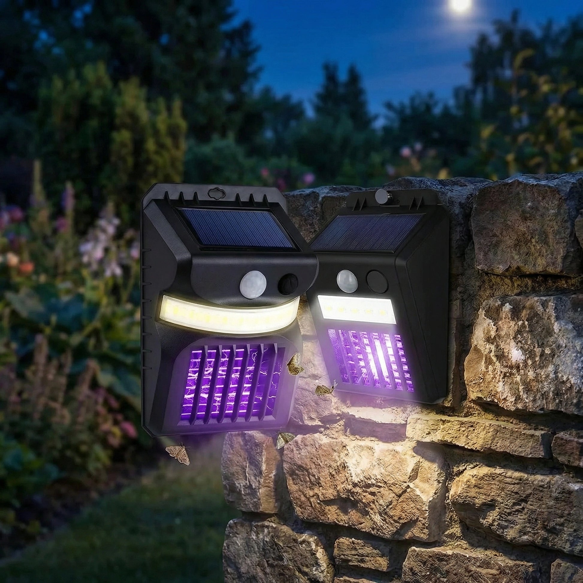 Upgrade your outdoor space with this dual-function solar bug zapper and motion-sensing wall light. Designed for gardens, patios, doorways, and backyards, it keeps mosquitoes away while providing bright illumination—all without increasing your electricity bill.