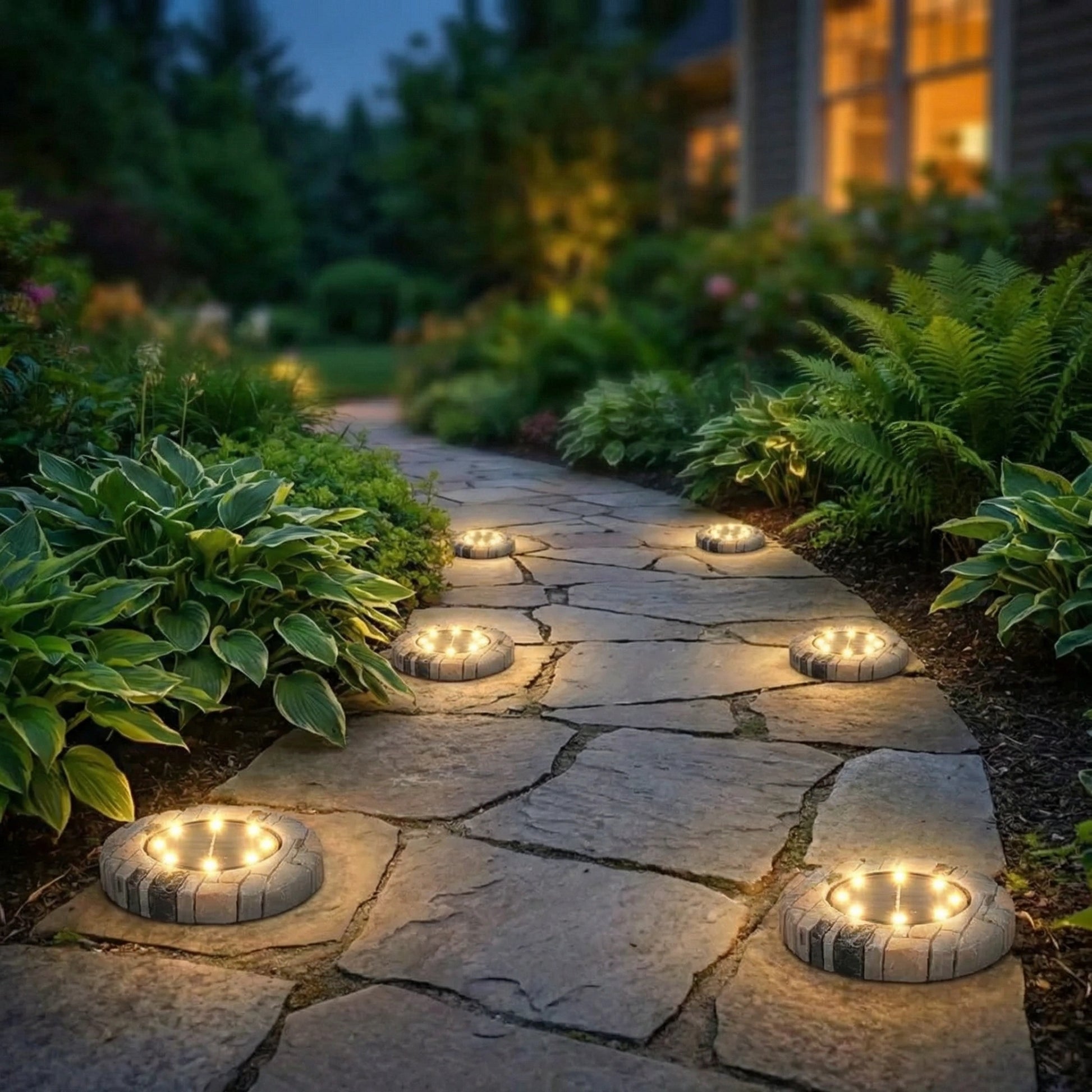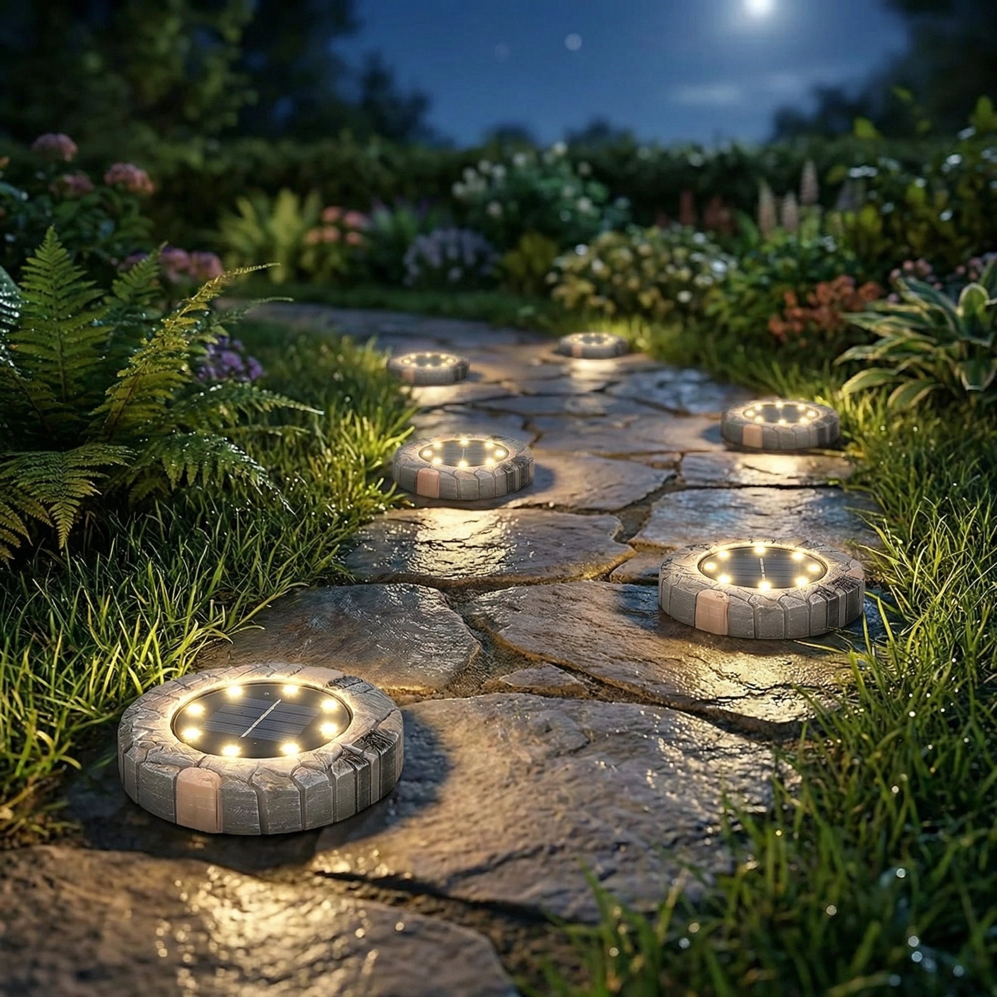 Crafted to mimic natural stone, these disk lights blend seamlessly into your garden, lawn, or patio. Each light weighs approximately ½ lb and features a super-realistic texture and finish, adding a touch of elegance to your outdoor decor without looking out of place.
