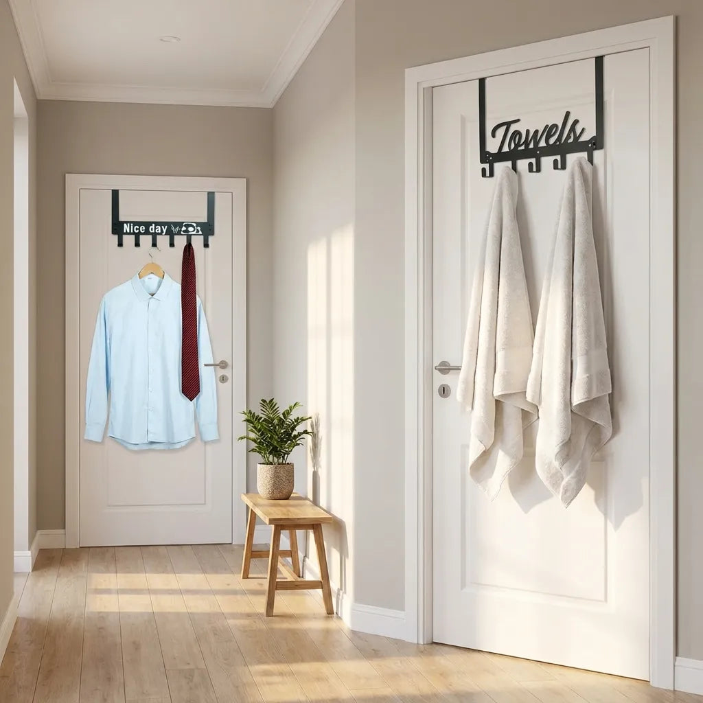 Tired of cluttered spaces? Our Space-Saving Over-Door Hook Rack is the ultimate solution for organizing your home, office, or dorm. Made from heavy-duty carbon steel with a rust-resistant finish, this 6-hook rack is built to last. It effortlessly holds towels, coats, scarves, bags, and more without damaging your doors—no drilling or tools required!