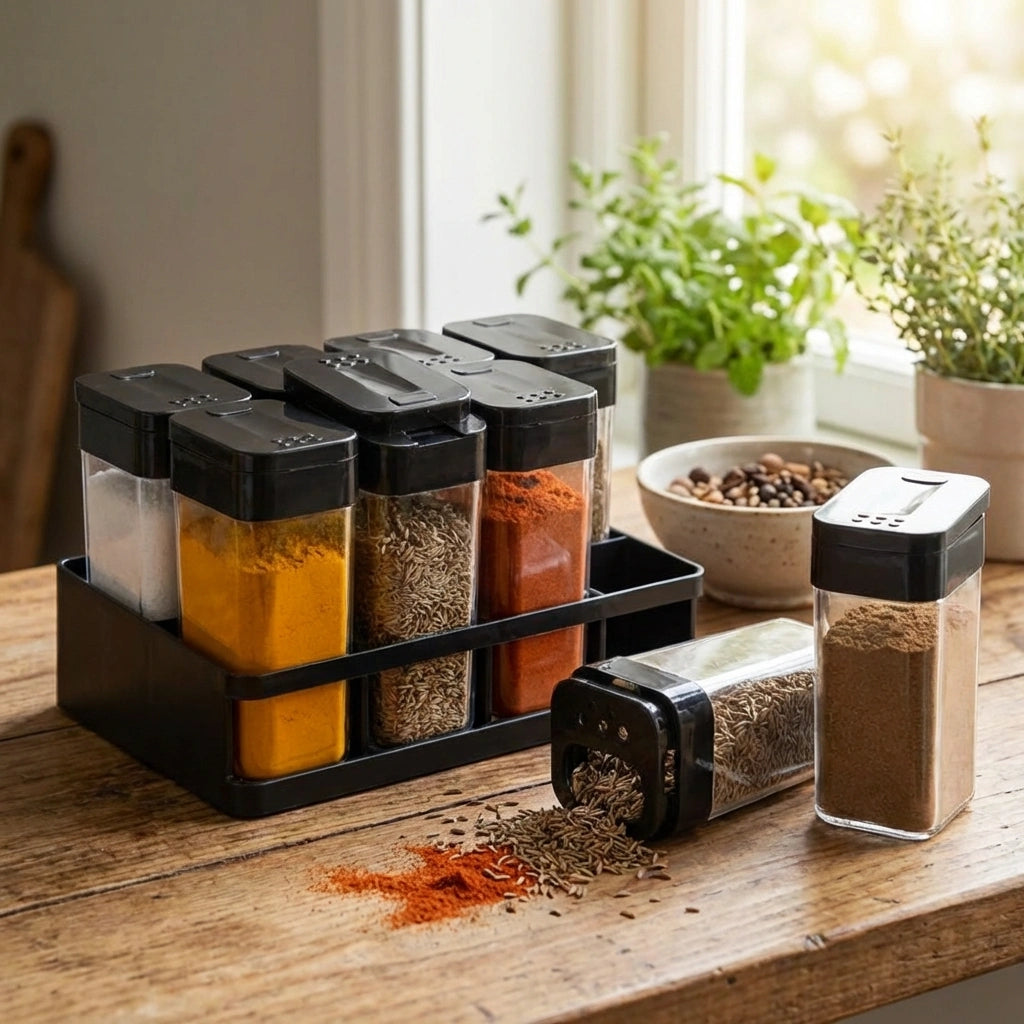 Keep your spices fresh and organized with this space-saving 6-in-1 or 12-in-1 spice jar set—compact, transparent, and kitchen-friendly!