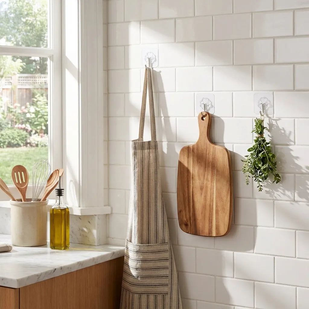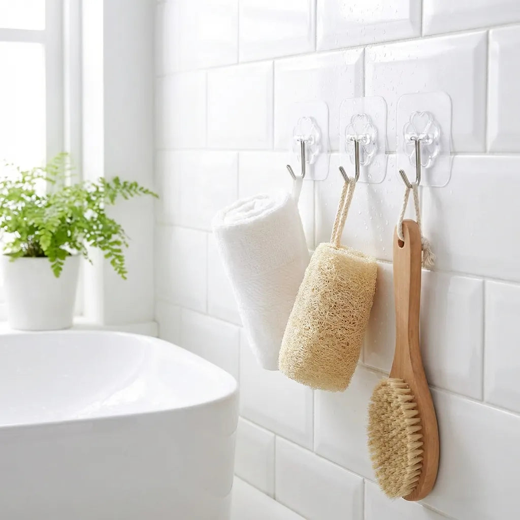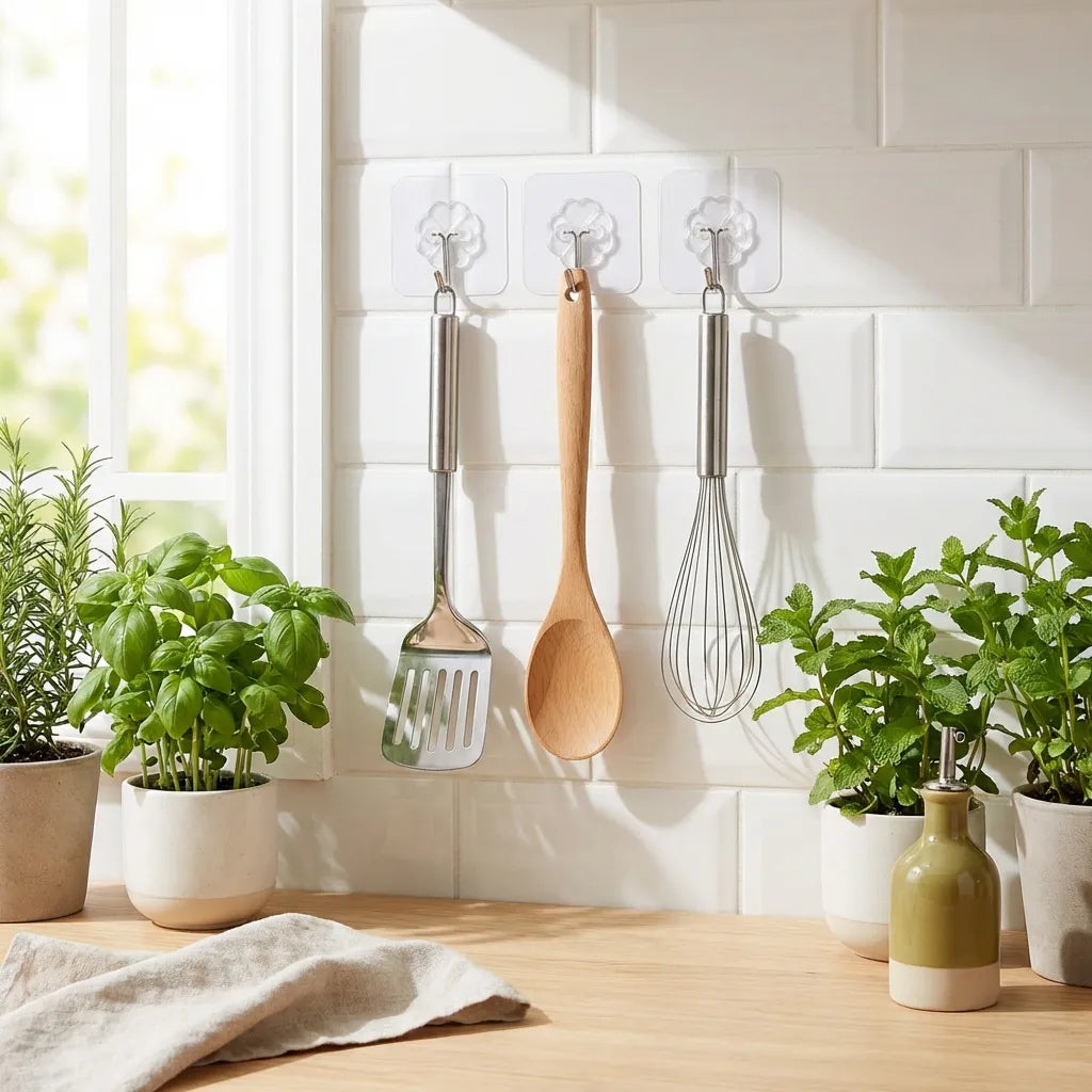 Invisible yet powerful! These seamless adhesive hooks hold up to 15kg—perfect for towels, bathrobes, kitchen tools & more. Pack of 12.